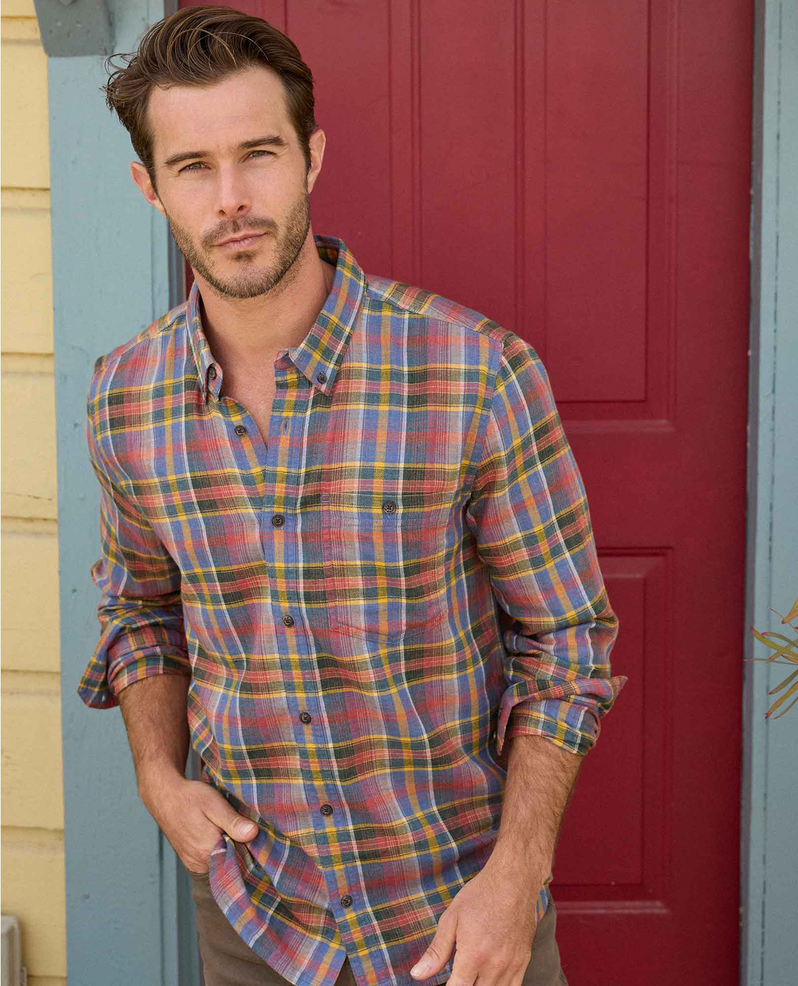 Features: Button down collar, button-through drop-in chest pocket, adjustable cuffs