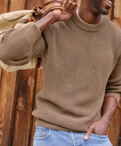 Features: Shaker stitch, rib collar, cuffs, and hem