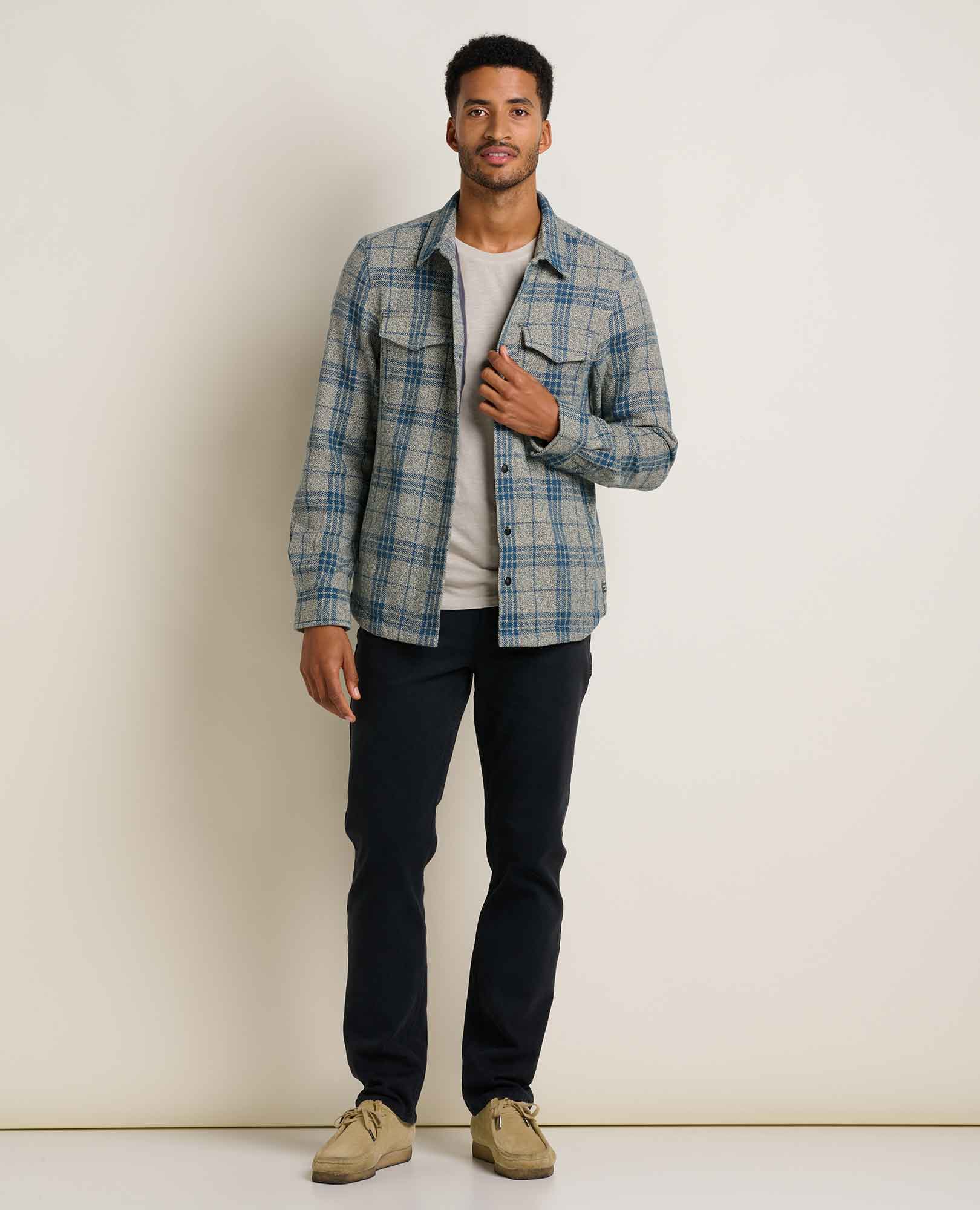 Features: Snap placket, two chest pockets with flaps, on-seam hand pockets, adjustable cuffs, jersey knit lining