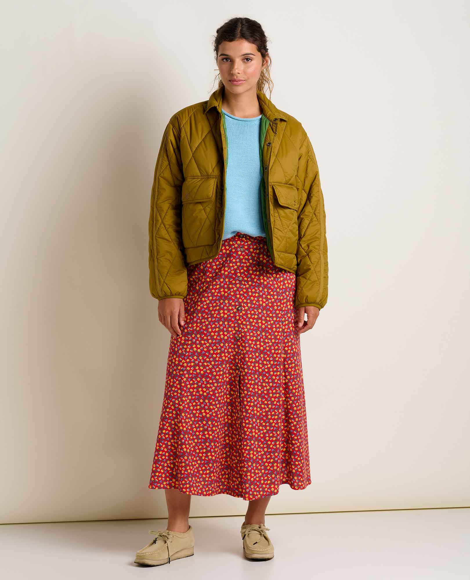 Features: Knitted with wool yarn on the exterior and cotton yarn on the interior, jersey stitch, rolled cuffs and hem
