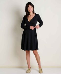 Toad & Co Women’s Freesia Long Sleeve Wrap Dress | Black