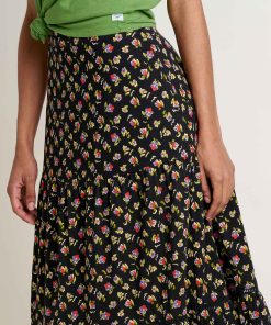 Toad & Co Women’s Marigold Tiered Midi Skirt | Black Pansy Print
