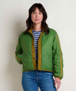 Features: Water/wind resistant with a PFC-free DWR finish, 130 GSM recycled sheet insulation, reversible, snap front, topped-on sleeve detail, patch pockets with snap flap closure and side entry, single welt pockets (reverse side)