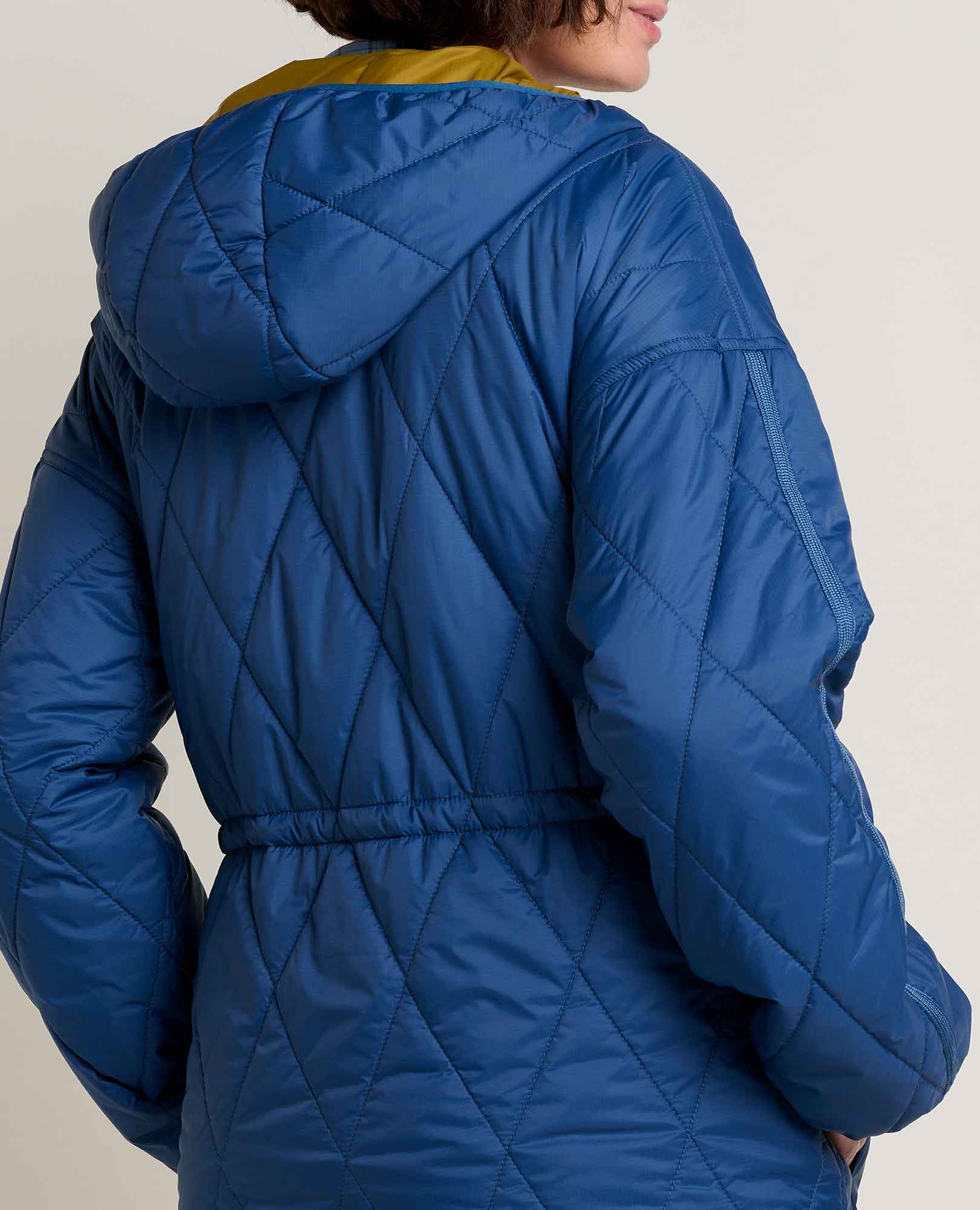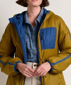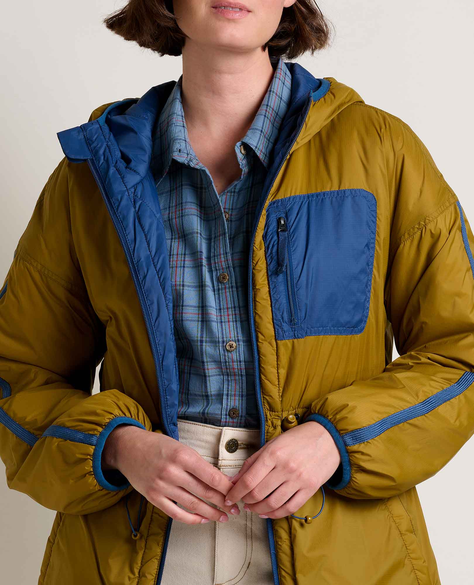 Packable, compressible, and water-resistant, this subtly-textured, 100% recycled nylon fabric is up for any kind of adventure. Inspired by retro outdoor gear, it’s both lightweight for easy layering and warm when you need it most.