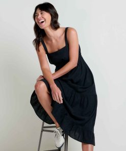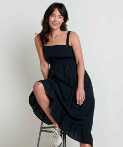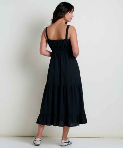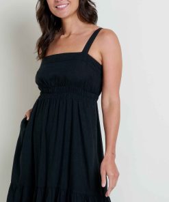 Fit: Tiered silhouette, square neck, bra-friendly adjustable straps, smocked waistband, midi length, 49 inch length